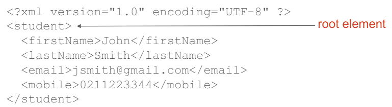 XML은 무조건 종료 태그가 있어야한다. <student> ... </student>