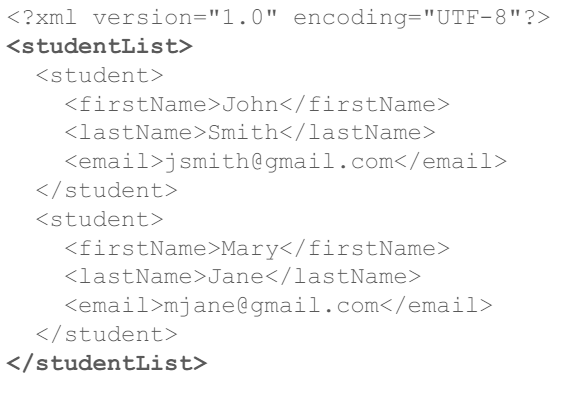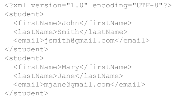 이러한 코드는 옳지않은 XML 코드이다. 왜냐하면 <student> 가 하나의 부모코드에 위치하지 않기 때문이다.